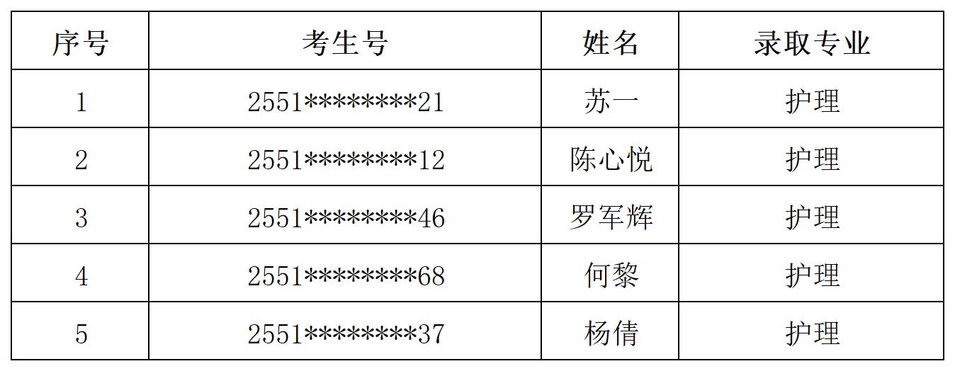 2019年单独招生预录取名单